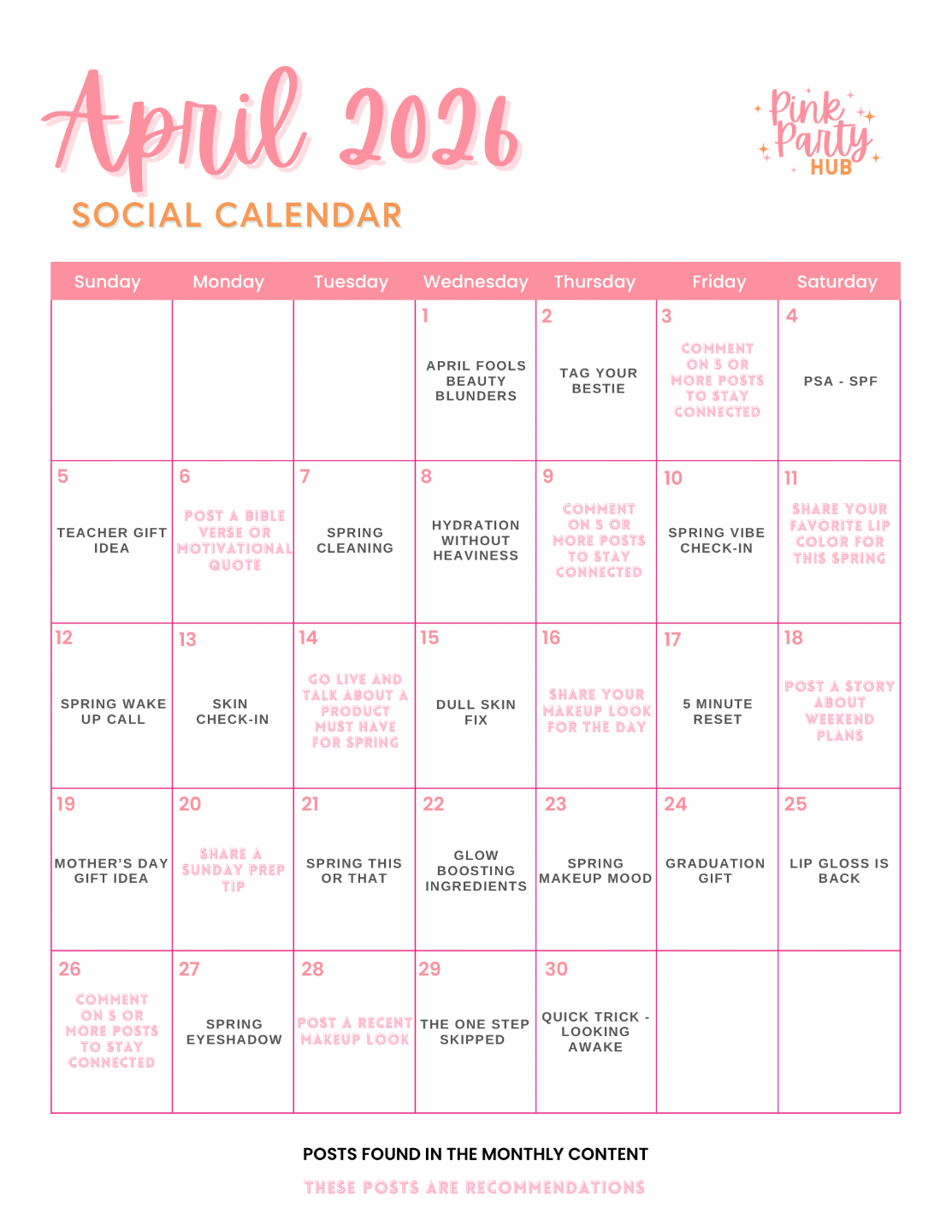 Monthly Social Content